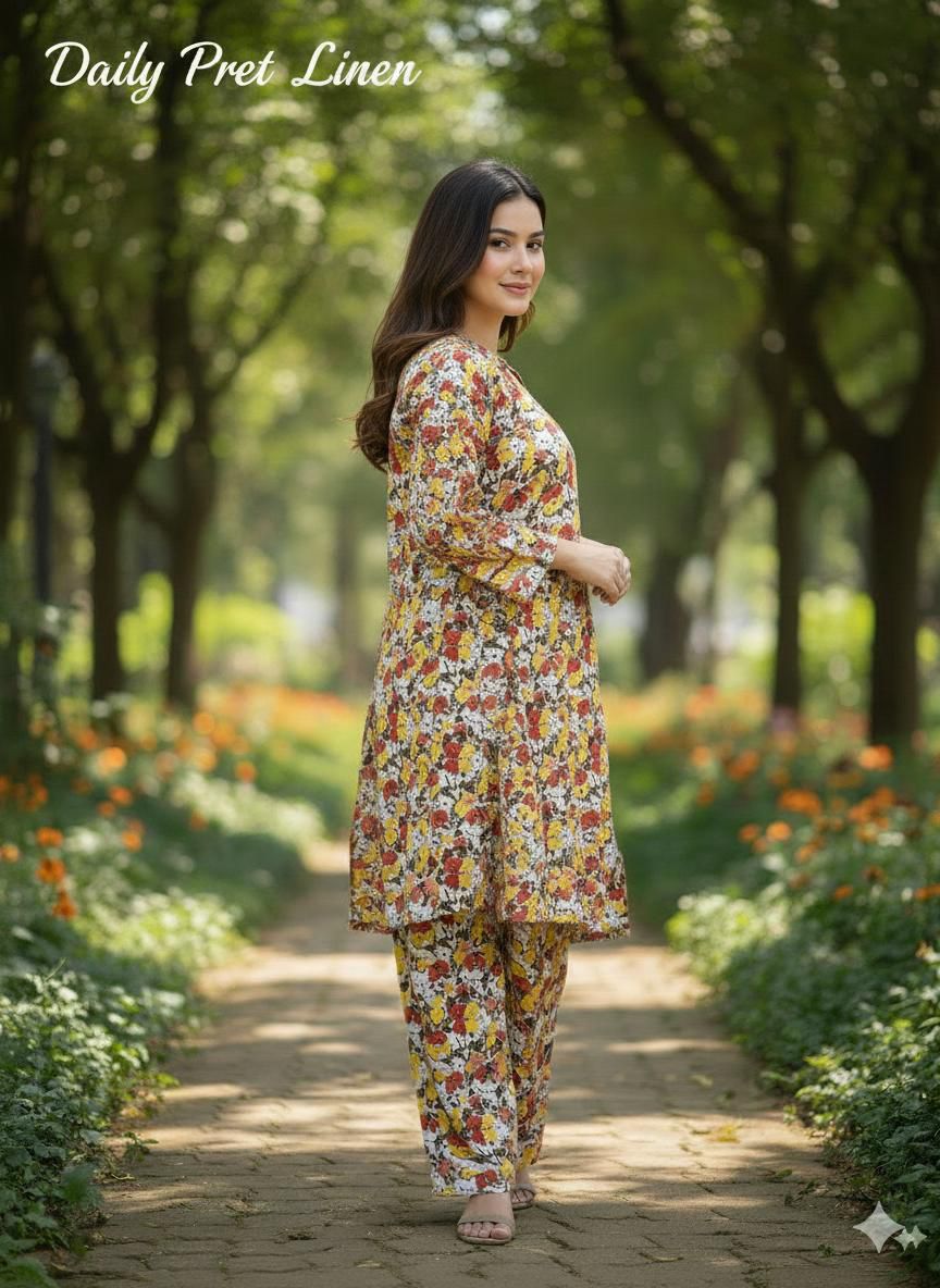 ✨ Daily Pret – Digital Printed Stone Linen Co-ord Set ICS-1064✨