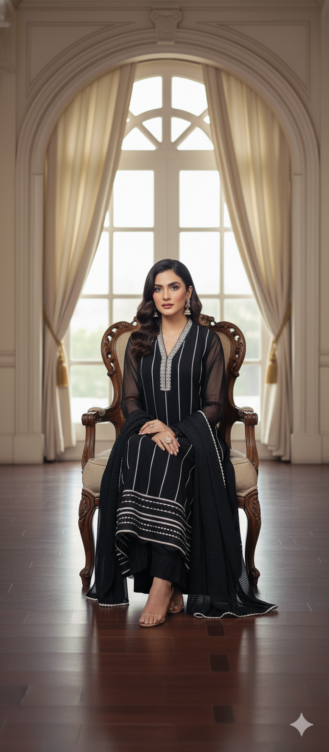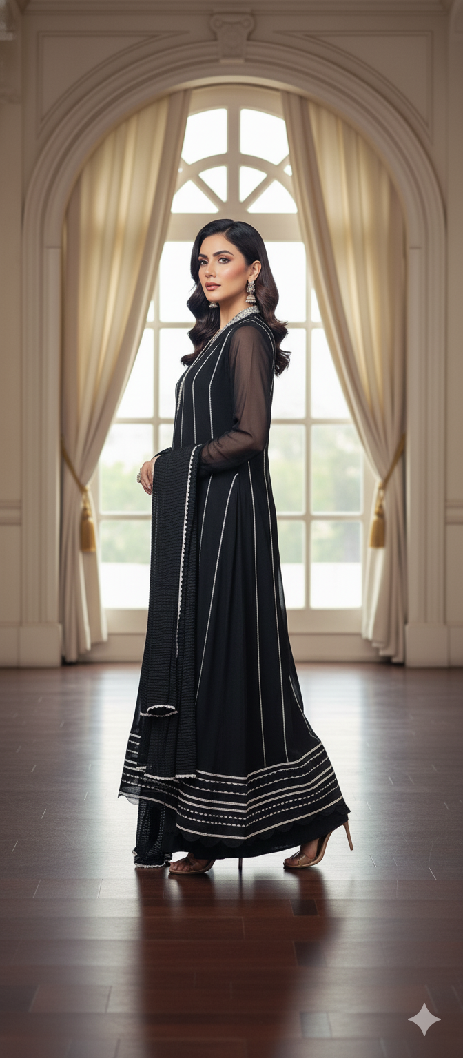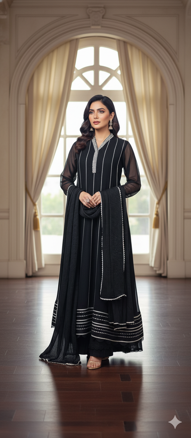 Festive Collection Vol 1 & 2A LOVELY BLACK AND SILVER CHIFFON FROK,