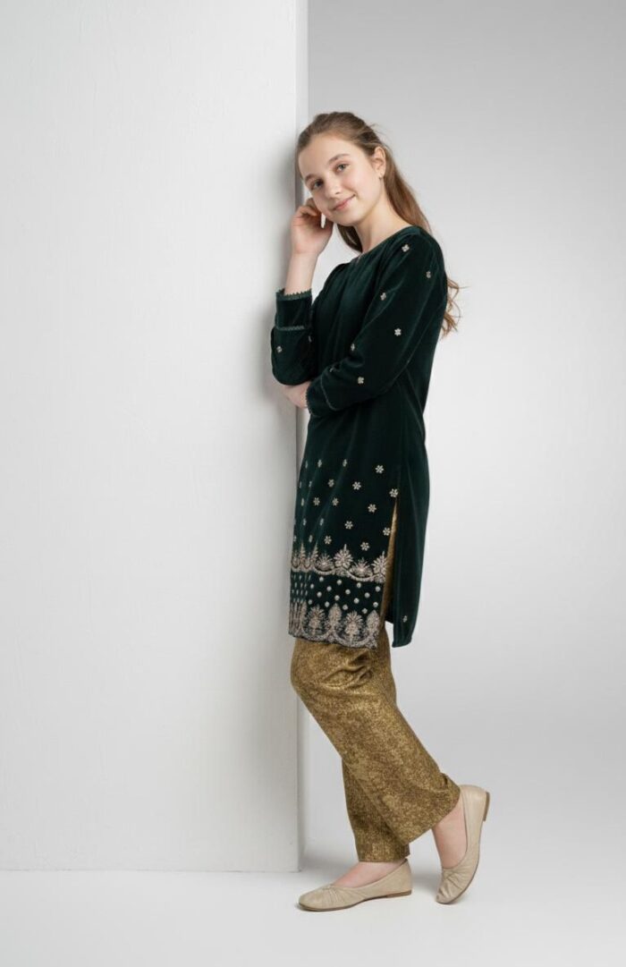 Be the first to review “Bottoe Green Embroidered Dress ICS-106”