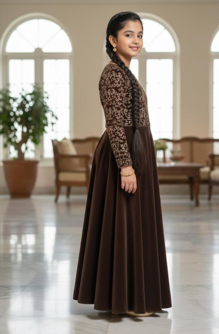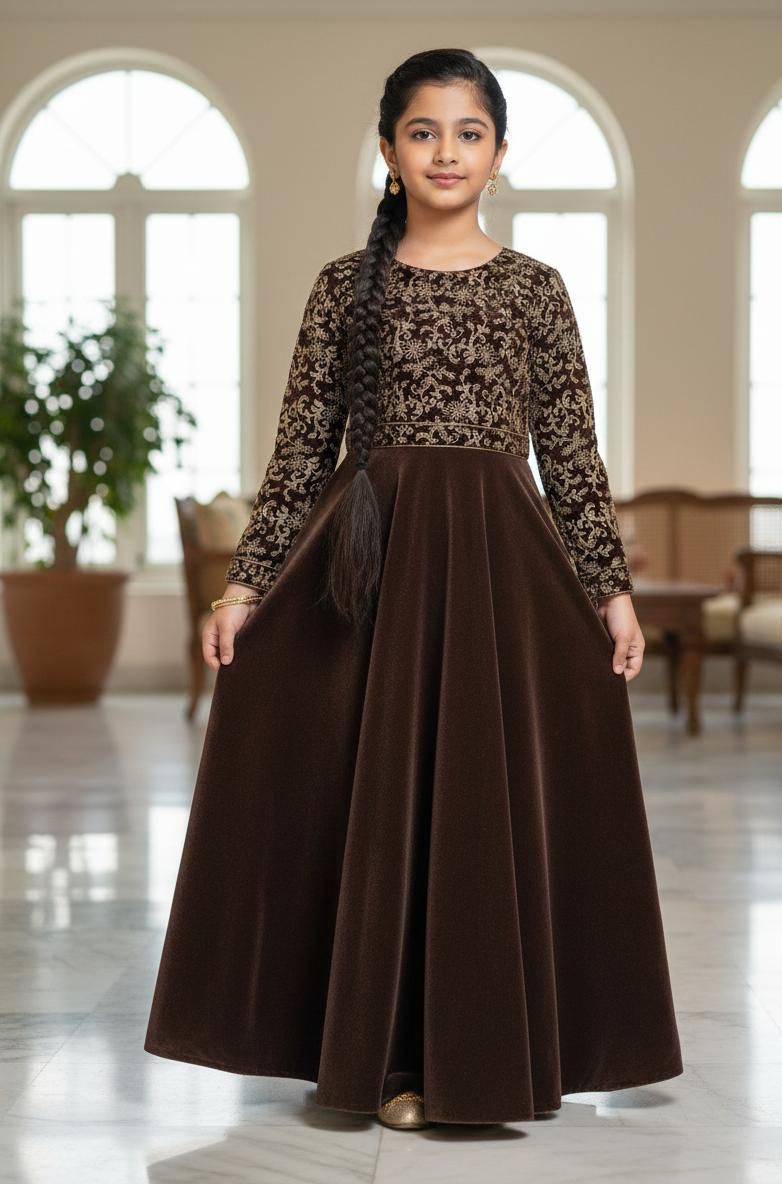 Kids CollectionFrock/ Maxi: Embriodered body and sleeves On Velvet