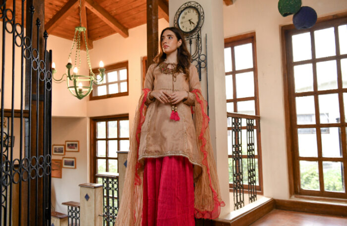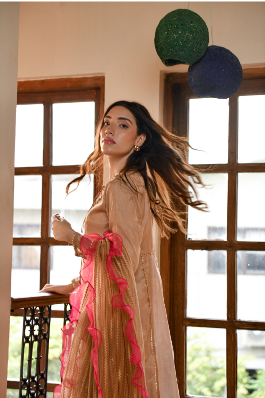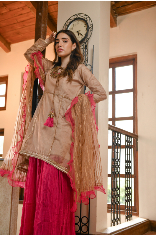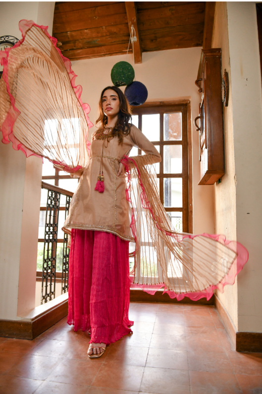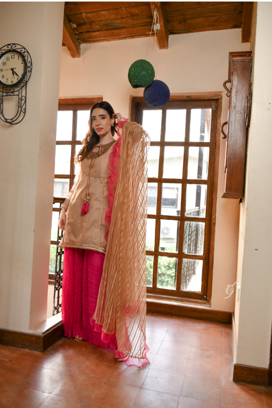 LIBAS EXCLUSIVE BEIGE & SHOCKING PINK PARTY WEAR SHS-504