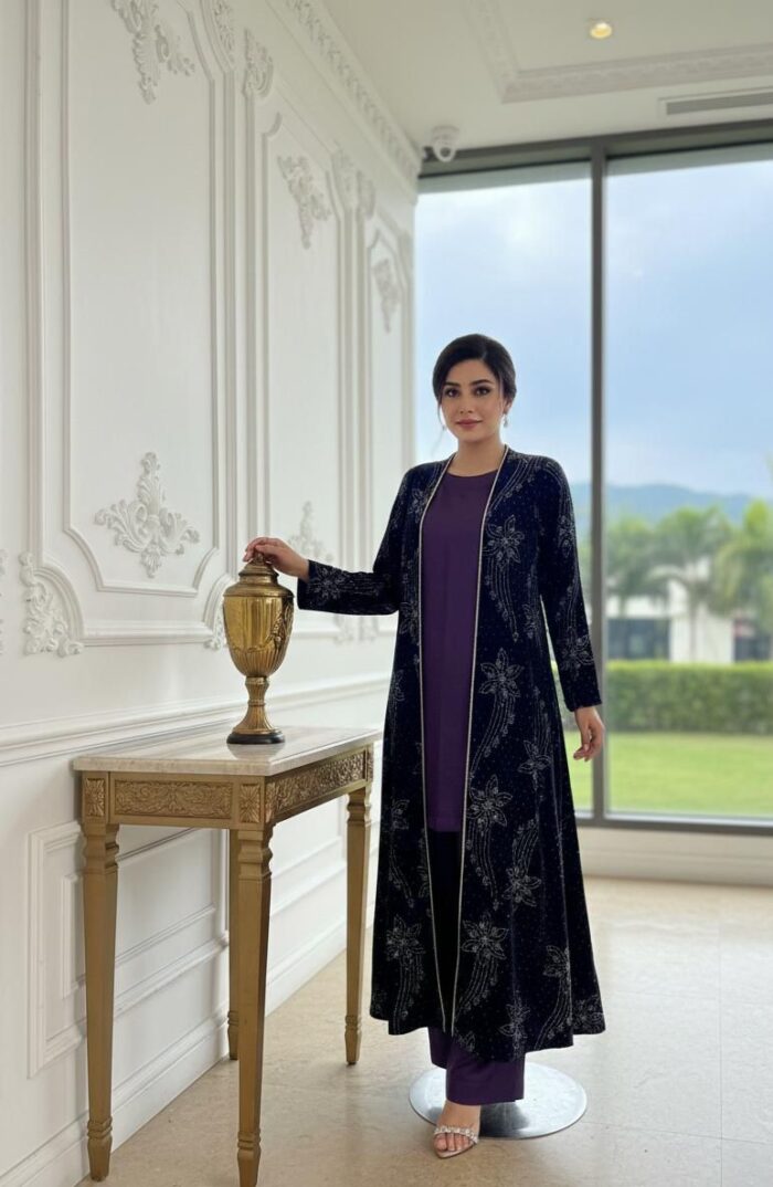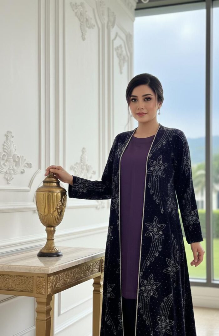 LUXURY EMBROIDERED VELVET GOWN DRESS ICS-1134