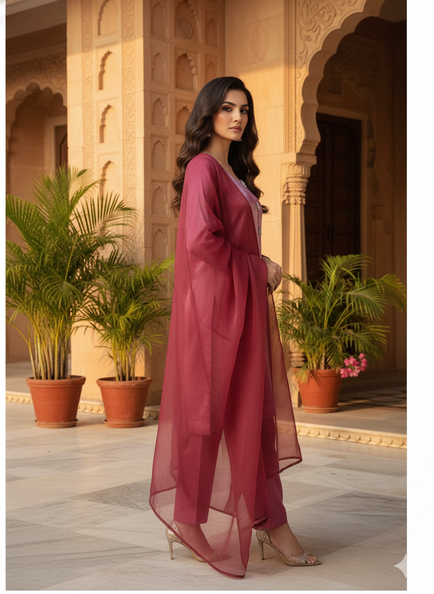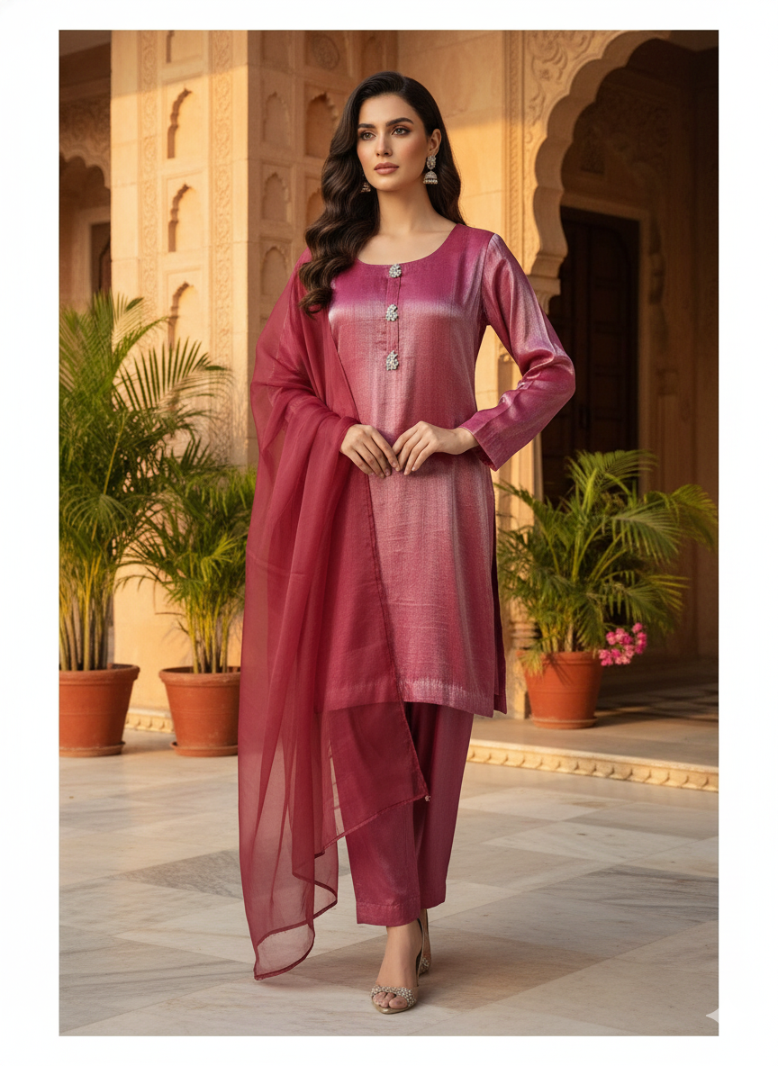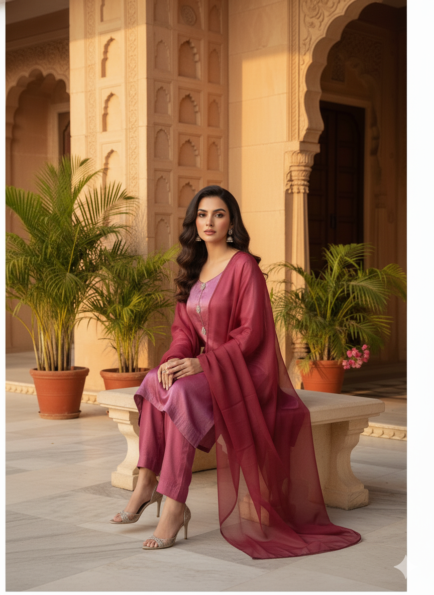 Luxury pret*Lawa Silk with Kundan Buttons Shirt