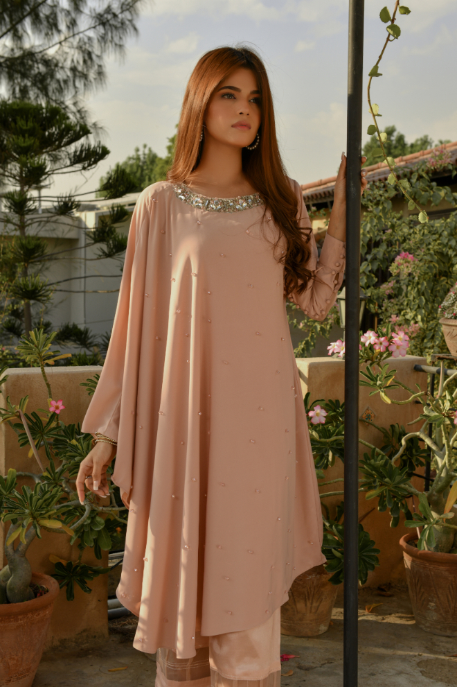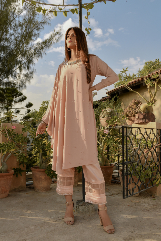 Festive Collection Vol 1 & 2Libas Exclusive New Festive Collection . This Dusty Pink Color dress is made on Georgette having beautiful hand embroidery paired with Rawsilk bottom.This dress can be order in extra small , small, medium ,large , extra large or as make to measure.