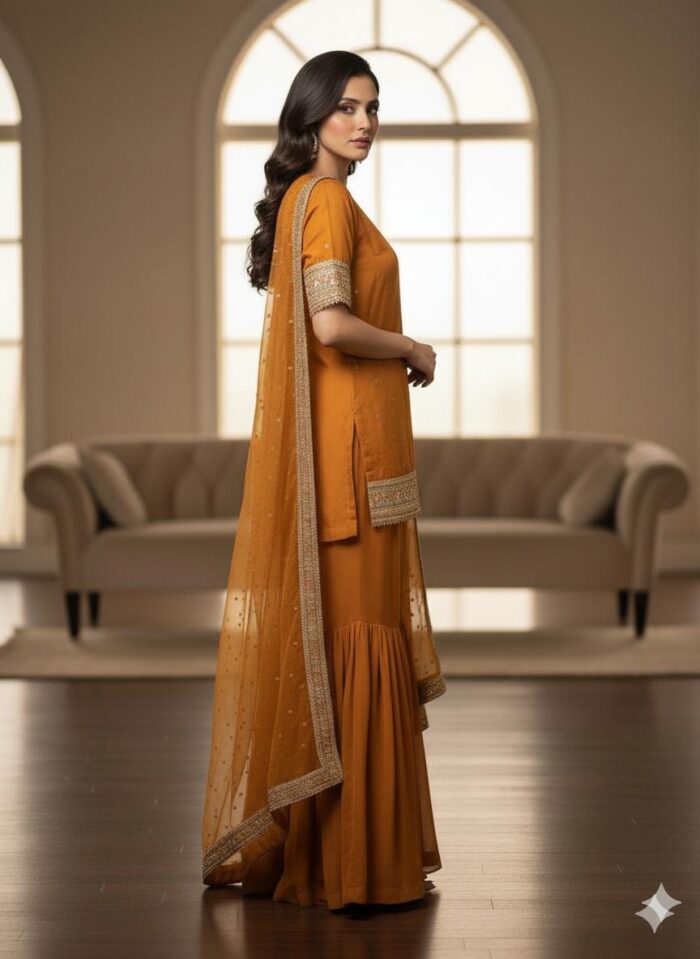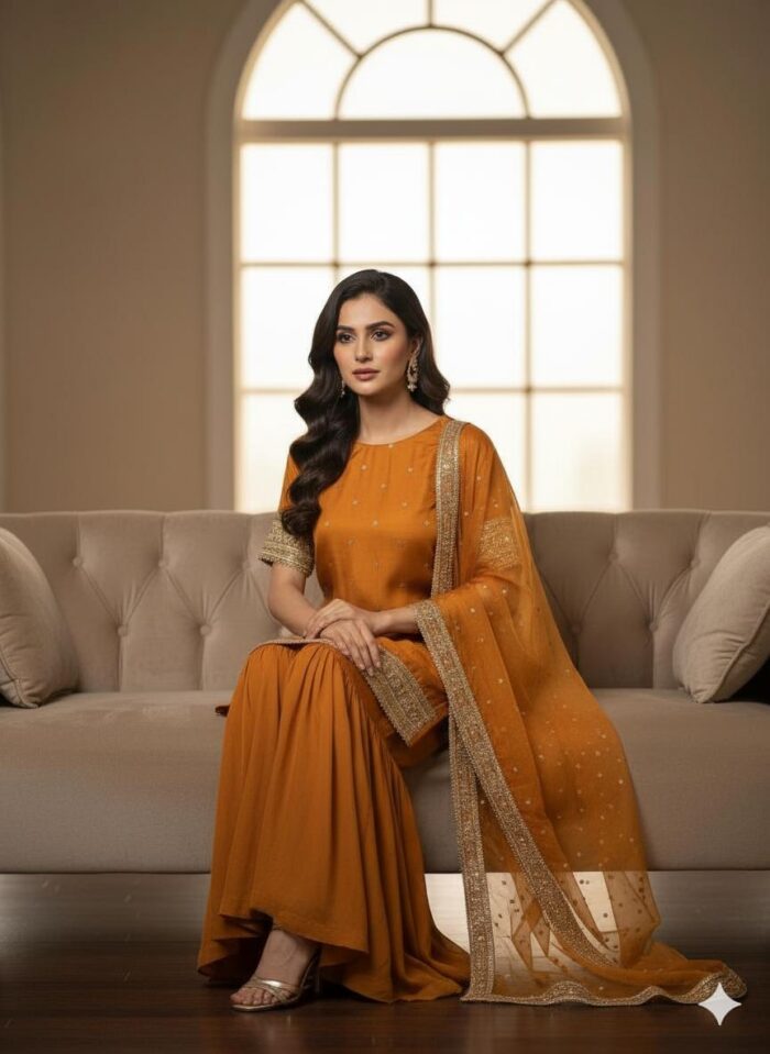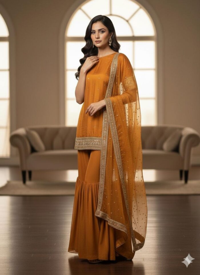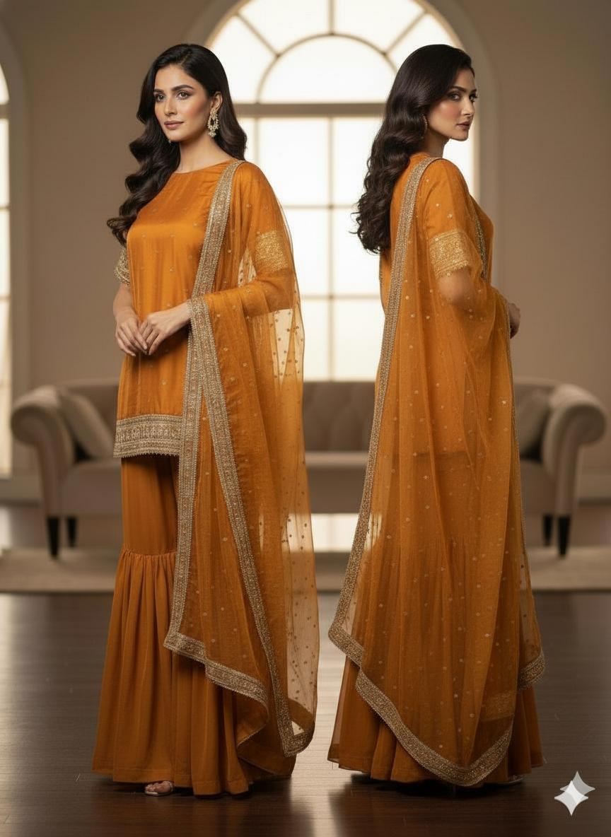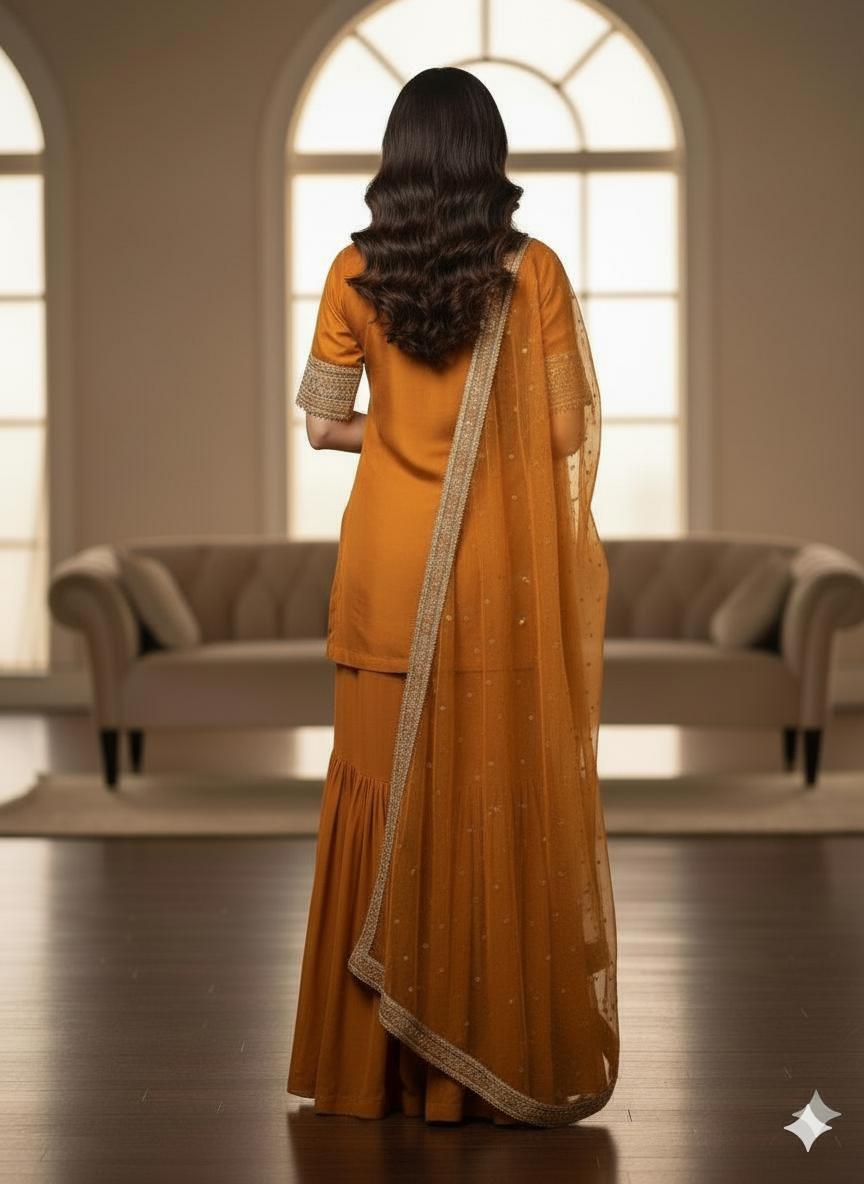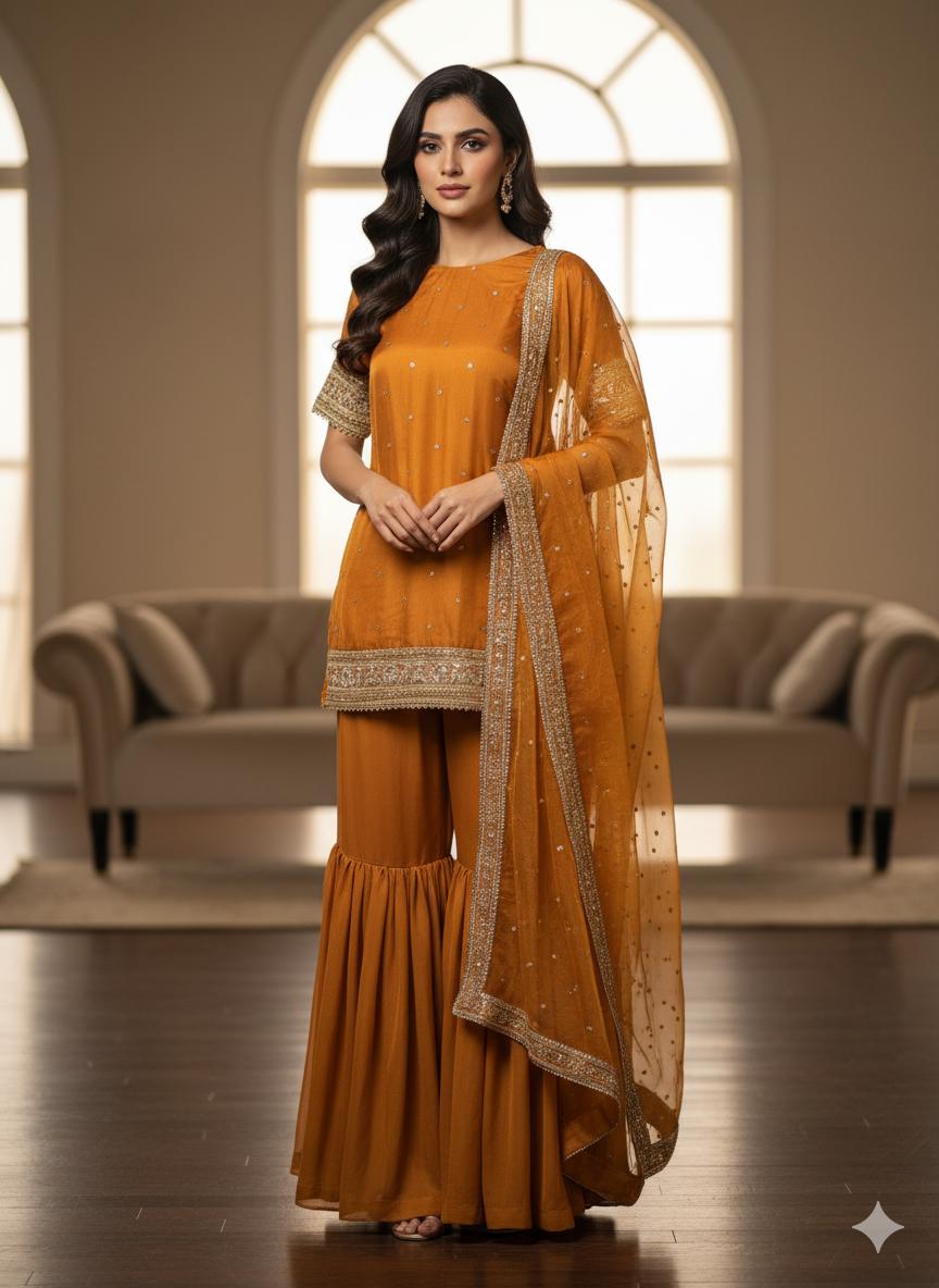 Rust Luxury Gharara Dress ICS-1106