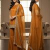 Wedding DressesA graceful ensemble featuring a Khaadi Net shirt adorned with delicate craftsmanship and finished with heavy embroidered lace detailing on the daman and sleeves. The look is beautifully complemented by a sheer Organza dupatta, embellished with intricate embroidered lace borders, adding a touch of elegance. The flowy Chiffon gharara completes this stunning outfit, offering a perfect blend of traditional charm and modern sophistication.