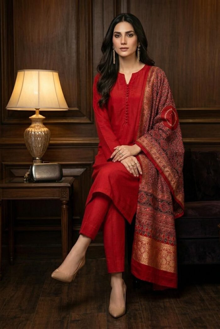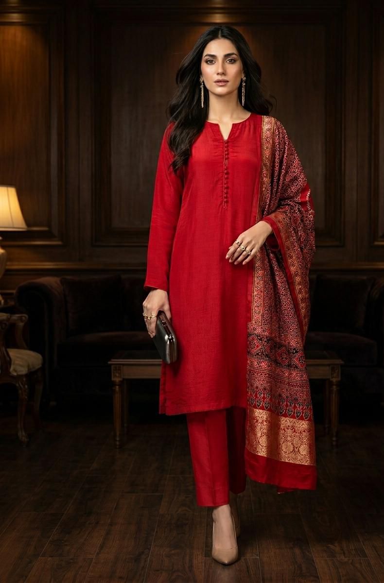 SHEESHA SILK DRESS WITH AJRAK SHAWL ICS-1159